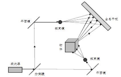 物光波面的記錄全息技術(shù)的第一步是將光波的全部振幅和相位信息記錄在感光材料上。由于感光材料只能接收光的振幅信息,因此必須想法把相位信息轉(zhuǎn)換成強(qiáng)度的變化才能記錄下來。干涉法是將空間相位調(diào)制轉(zhuǎn)換為空間強(qiáng)度調(diào)制的標(biāo)準(zhǔn)方法,因此采用相干光干涉條紋來記錄圖像。