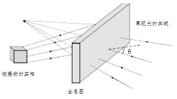 其第一步是利用干涉原理記錄物體光波信息,此即拍攝過程:被攝物體在激光輻照下形成漫射式的物光束;另一部分激光作為參考光束射到全息底片上,和物光束疊加產(chǎn)生干涉,把物體光波上各點(diǎn)的位相和振幅轉(zhuǎn)換成在空間上變化的強(qiáng)度,從而利用干涉條紋間的反差和間隔將物體光波的全部信息記錄下來。記錄著干涉條紋的底片經(jīng)過顯影、定影等處理程序后,便成為一張全息圖,或稱全息照片;其第二步是利用衍射原理再現(xiàn)物體光波信息,這是成像過程:全息圖猶如一個(gè)復(fù)雜的光柵,在相干激光照射下,一張線性記錄的正弦型全息圖的衍射光波一般可給出兩個(gè)像,即原始像(又稱初始像)和共軛象。再現(xiàn)的圖像立體感強(qiáng),具有真實(shí)的視覺效應(yīng)。全息圖的每一部分都記錄了物體上各點(diǎn)的光信息,故原則上它的每一部分都能再現(xiàn)原物的整個(gè)圖像,通過多次曝光還可以在同一張底片上記錄多個(gè)不同的圖像,而且能互不干擾地分別顯示出來。
