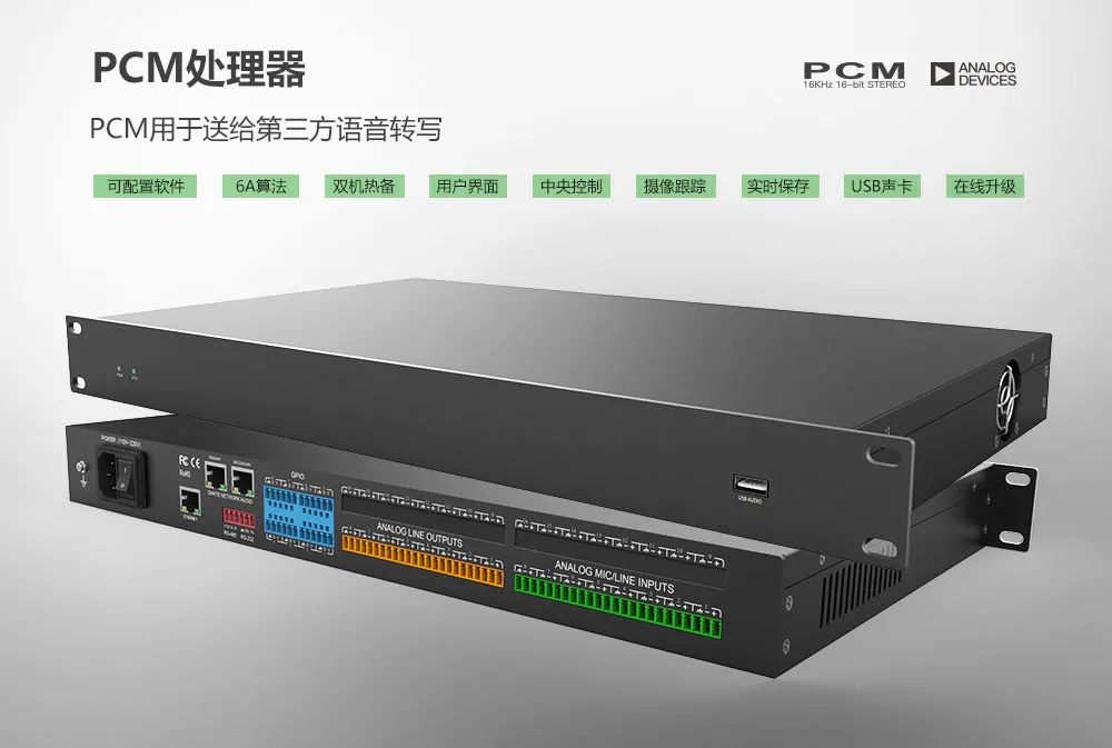 在靜態(tài)演示區(qū)里的英雄產(chǎn)品中,用于語(yǔ)音轉(zhuǎn)寫(xiě)、同聲傳譯、庭審等司法機(jī)構(gòu)場(chǎng)景的PCM處理器首次亮相本次展會(huì)。主要功能特點(diǎn)有PCM用于第三方數(shù)字化語(yǔ)音轉(zhuǎn)寫(xiě)、 可配置軟件、6A算法、雙機(jī)熱備、用戶界面、中央控制、攝像跟蹤、實(shí)時(shí)保存、USB聲卡、在線升級(jí)。