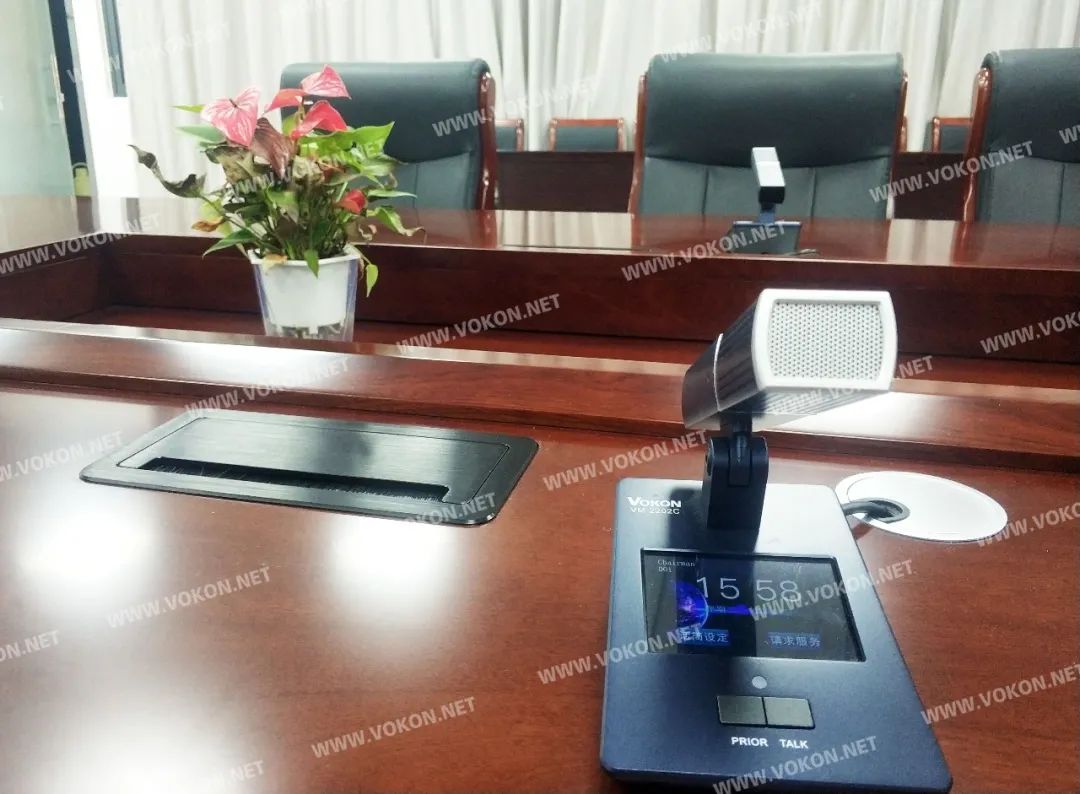 VOKON團(tuán)隊(duì)在對校園會議室進(jìn)行實(shí)地考察后,評定會議室屬于中型場地(80-150m²),考慮會議室日常用途、實(shí)際面積、使用需求等多方面因素后,最終敲定了可實(shí)現(xiàn)自由、輪替、限制發(fā)言、主席專用及視頻跟蹤等功能,有效提升會議秩序管控;并擁有強(qiáng)大的擴(kuò)展性。