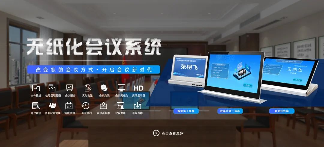 騰中無紙化辦公會議系統(tǒng)是騰中自主研發(fā)的新一代分布式跨平臺無紙化會議系統(tǒng),具有會議預(yù)約、會議簽到、資料查閱、同屏互動、會議投票、電子白板、呼叫服務(wù)、分組討論、視頻會商等功能。與會者可進(jìn)行實時的會商和有效的信息溝通,改變了傳統(tǒng)會議低效、資源浪費、保密隱患等問題,實現(xiàn)會議全程無紙化。