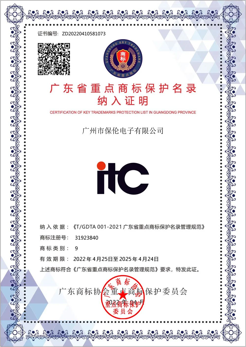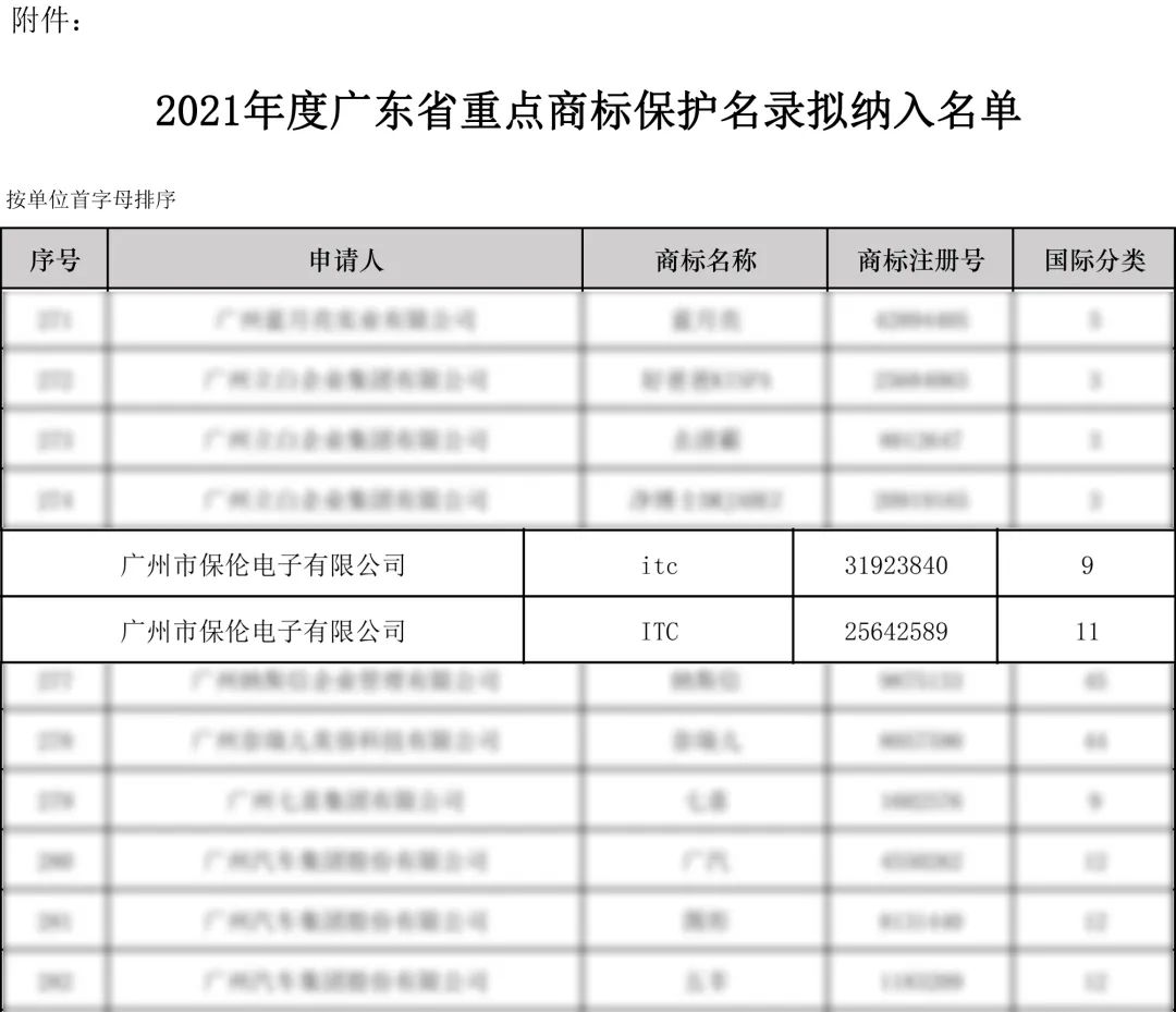 2022年4月25日,2021年度廣東省重點(diǎn)商標(biāo)保護(hù)名錄正式公告。本次活動(dòng)共有1287件申報(bào)材料進(jìn)入專家評(píng)審環(huán)節(jié),經(jīng)過(guò)商保委審議會(huì)議后,有580件商標(biāo)進(jìn)入公示環(huán)節(jié),公示過(guò)后,最終共有607件商標(biāo)被納入2021年度廣東省重點(diǎn)商標(biāo)保護(hù)名錄。廣州市保倫電子有限公司“itc”、“ITC”商標(biāo)從眾多申請(qǐng)中脫穎而出,成功納入2021年度廣東省重點(diǎn)商標(biāo)保護(hù)名錄。