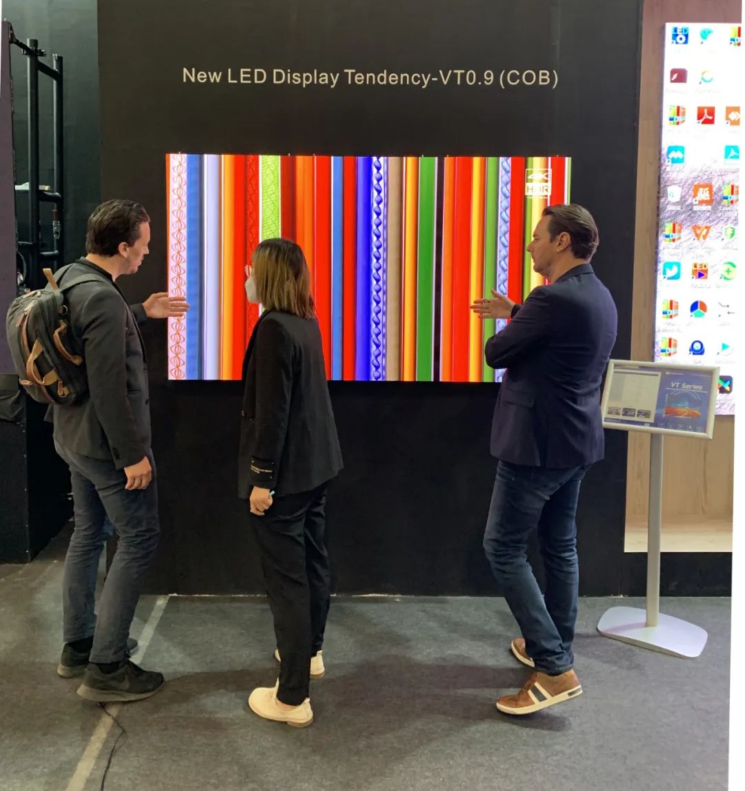 本次ISE展會(huì)聯(lián)建光電展臺(tái)上,聯(lián)建光電COB產(chǎn)品VT0.9系列以高清亮麗的畫質(zhì)吸引眾多眼球,產(chǎn)品采用聯(lián)建光電Vmini微間距顯示技術(shù),全倒裝COB封裝,擁有大于10000:1超高對(duì)比度,微米級(jí)發(fā)光芯片,可呈現(xiàn)更黑的黑場(chǎng)和更高的對(duì)比度,呈現(xiàn)出無與倫比的高清畫質(zhì)。聯(lián)建光電擁有成熟的COB微間距生產(chǎn)線,達(dá)到規(guī);慨a(chǎn),目前已獲得眾多海內(nèi)外客戶訂單。