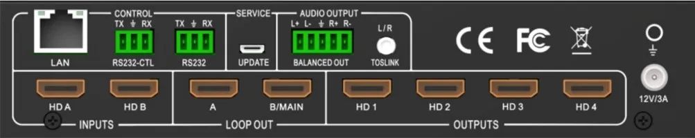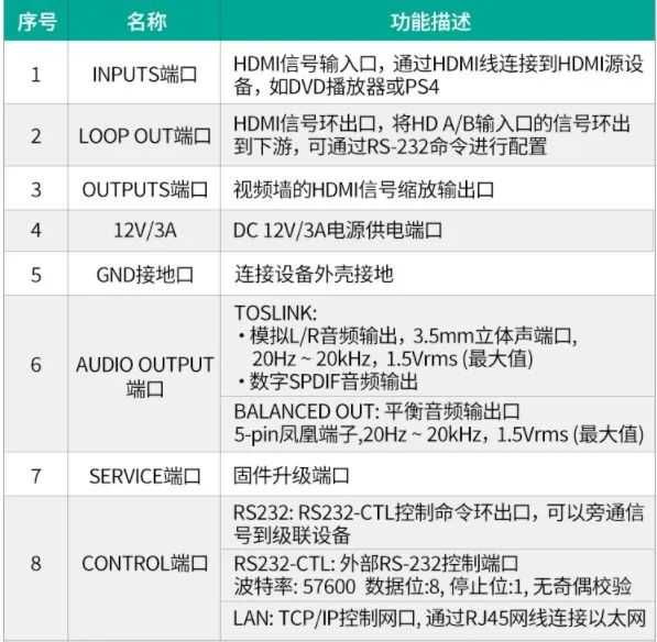 RS232-CTL控制命令環(huán)出口,可以旁通信號到級聯(lián)設(shè)備,控制下一級設(shè)備。