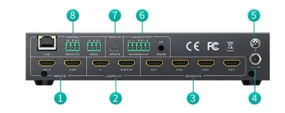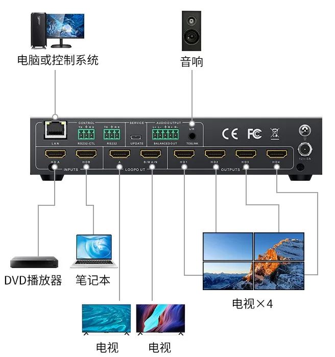 2進4/9出 HDMI2.0 視頻拼接器符合HDMI 2.0和HDCP2.2規(guī)范(向下兼容);