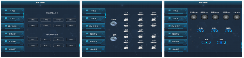 此次項(xiàng)目中采用了DMC300全網(wǎng)絡(luò)可編程中央控制主機(jī)。控制26臺(tái)電腦主機(jī)開關(guān)、20電視開關(guān)、3臺(tái)電腦主機(jī)視頻播放、4臺(tái)投影機(jī)開關(guān)、8乘8矩陣信號(hào)切換。