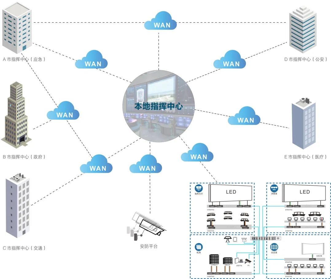 可預(yù)覽其他區(qū)域視頻信號、進(jìn)行控制、感知狀態(tài)等,實(shí)現(xiàn)多區(qū)域信號和控制互聯(lián)互通,資源整合利用,從而實(shí)現(xiàn)多區(qū)域的互聯(lián)互通。
