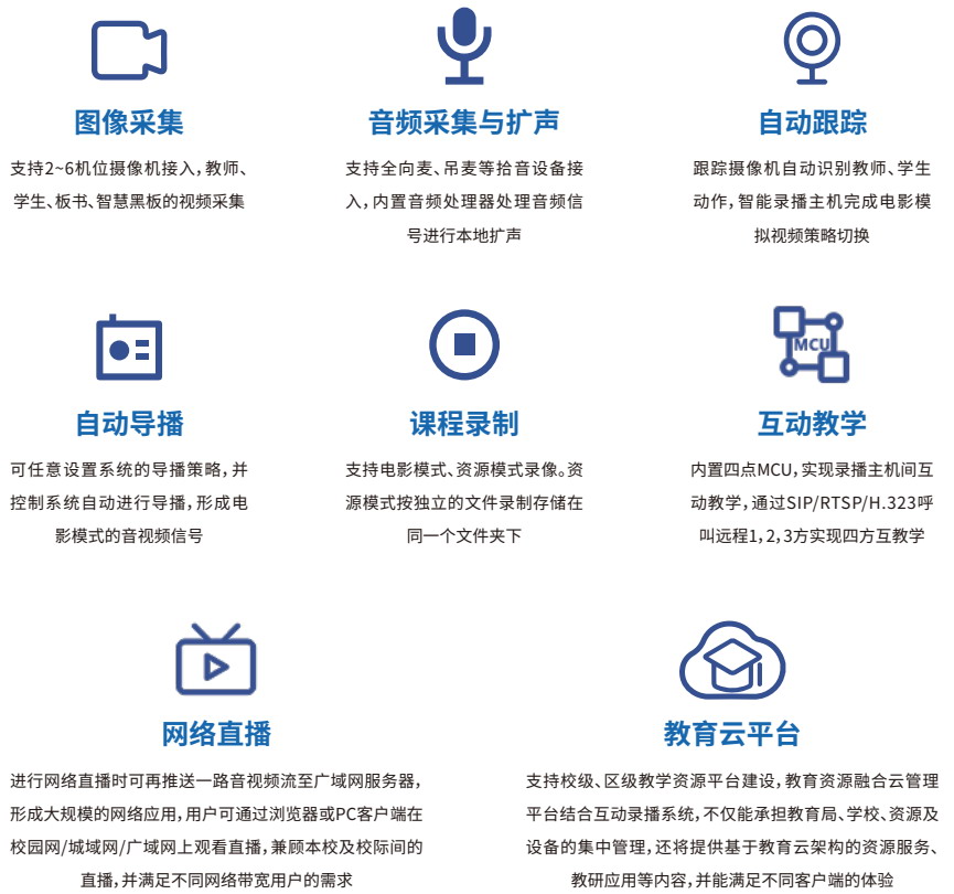 自動(dòng)跟蹤、自動(dòng)錄制、自動(dòng)導(dǎo)播、自動(dòng)上傳。