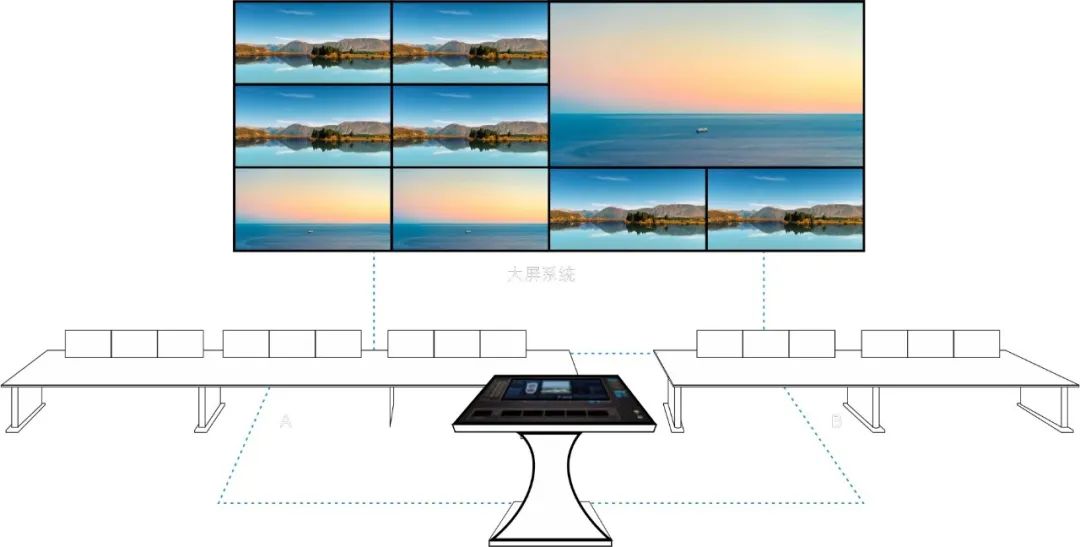 在布局完成后,拼接屏迅速切換為新的布局,也可將預(yù)布局保存為場景,待需要時調(diào)用,提高了應(yīng)急情況下慧醫(yī)保信息中心各部門協(xié)同、集群指揮、聯(lián)合遠程視頻會商、調(diào)度信息管理的能力。