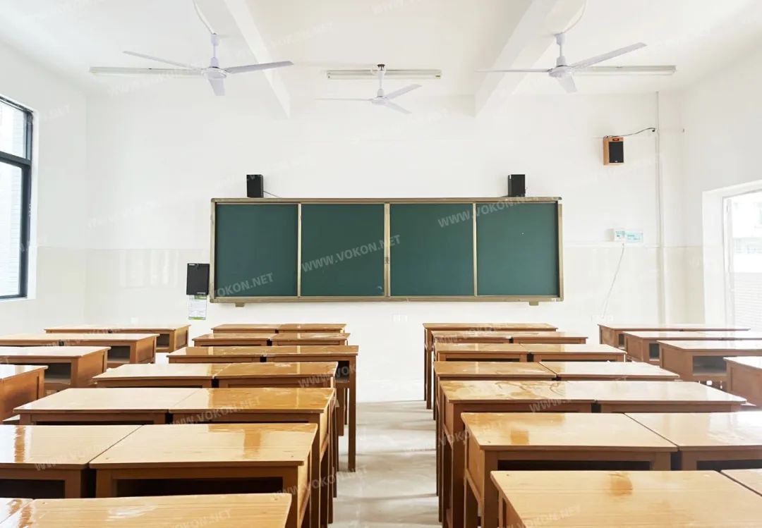 在各班級和老師辦公室,廣播揚聲器的配置為全分頻壁掛音箱,外形小巧美觀,聲音輻射角度大,音質(zhì)清晰、延時小,除日常接收校園廣播外,可互不干擾接收多音源廣播。