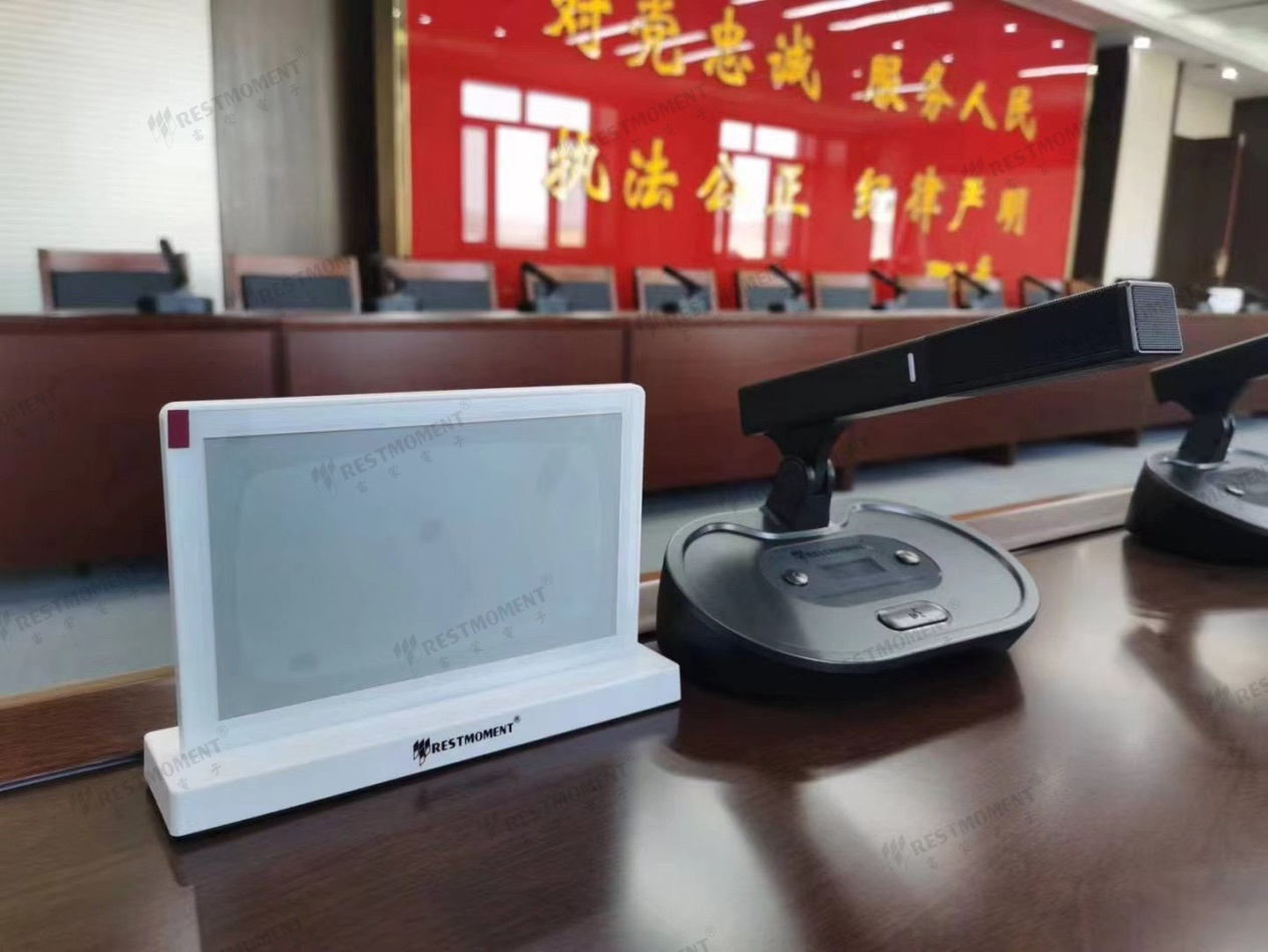 為了保持會議室的完整性,應用的是雷蒙電子第四代全數(shù)字無線會議系統(tǒng),省去桌面開孔和布線的工序,便于日常維護和管理。采用2.4G無線全數(shù)字射頻(PHSS)技術,抗干擾力性、保密性更強;會議話筒高保真音質,超遠拾音距離,搭配擴聲系統(tǒng)和陣列聲柱音響,真實還原清澈人聲;話筒具備獨立音量增益調節(jié)、自動增益補償、低音切除,具備5段EQ均衡可調,每支話筒可設置專用EQ。無線話筒旁邊搭配雙面7.5寸電子桌牌,用戶可以通過顯示屏實時接收各種動態(tài)信息,無紙化設計,智能便捷環(huán)保。