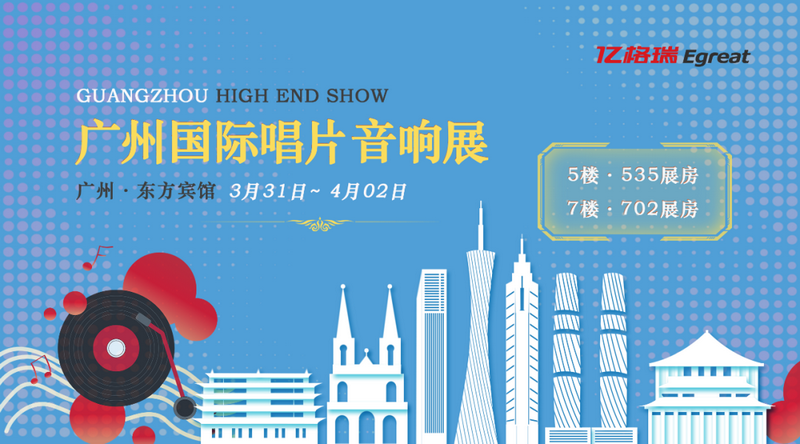 2023廣州國(guó)際音響唱片展將于3月31日至4月2日在廣州東方賓館及中國(guó)大酒店舉行,億格瑞將亮相雅頓音響、LG中國(guó)展廳,恭候大家的光臨!