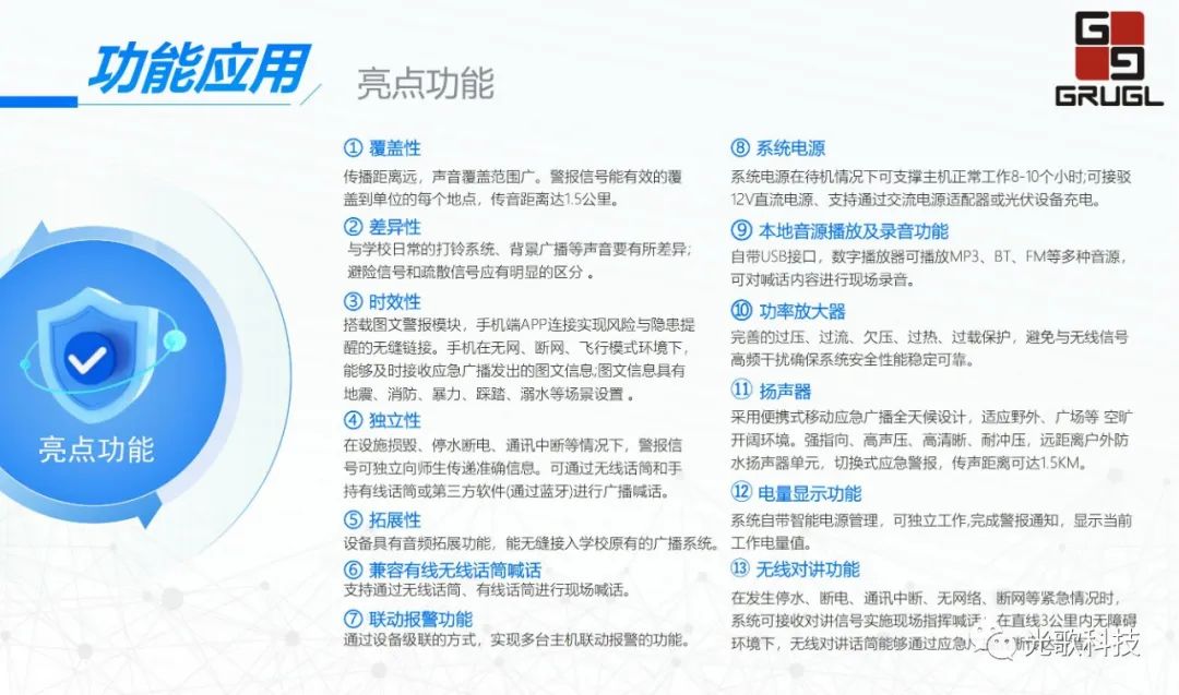 GRUGL光歌品牌的產(chǎn)品,因其美觀大方的外形設(shè)計(jì)、穩(wěn)定可靠的質(zhì)量水平贏得了客戶的一致贊譽(yù)。越來(lái)越多的知名建筑里,可以看到GRUGL光歌品牌的身影。為客戶提供一站式的專業(yè)音頻系統(tǒng)解決方案是GRUGL光歌品牌的巨大優(yōu)勢(shì)。全系列的公共廣播系統(tǒng)產(chǎn)品,能滿足從小型咖啡廳到大型國(guó)際機(jī)場(chǎng)的所有需求;全系列的音視頻會(huì)議系統(tǒng),能構(gòu)建不同規(guī)模的會(huì)議室音視頻解決方案;全系列的專業(yè)擴(kuò)聲系統(tǒng),能滿足市場(chǎng)各類(lèi)專業(yè)擴(kuò)聲需求。