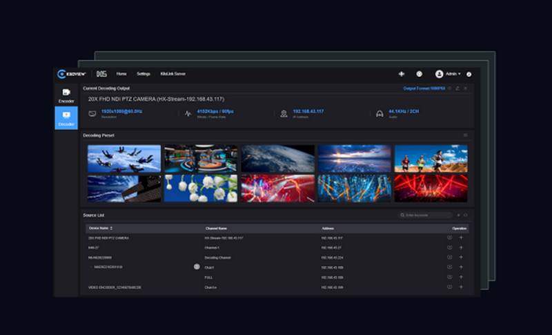 在解碼模式下,通過(guò)網(wǎng)頁(yè)后臺(tái),您可預(yù)設(shè)9個(gè)解碼目標(biāo)進(jìn)行控制,并從多個(gè)NDI源中選擇其一解碼輸出。切換過(guò)程不黑屏、不閃爍、不卡頓,平滑流暢。