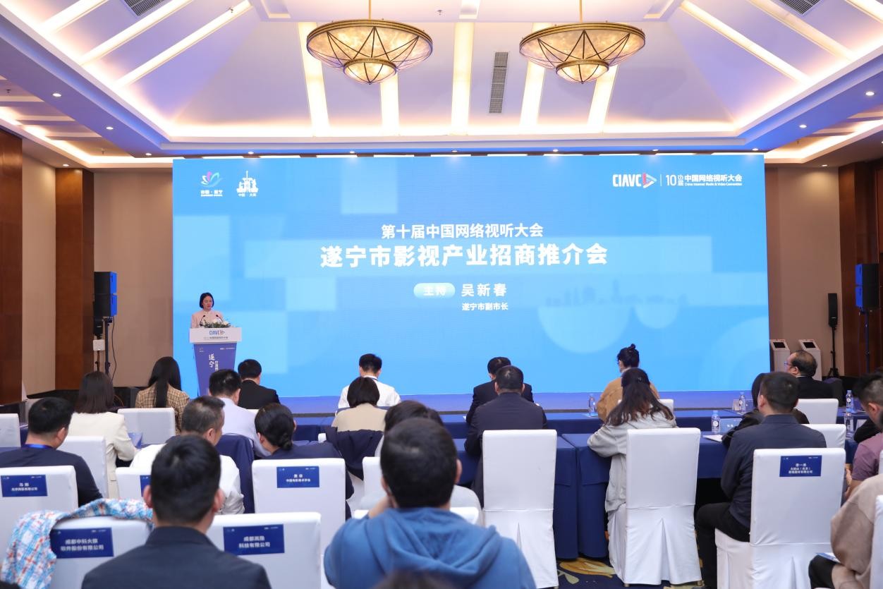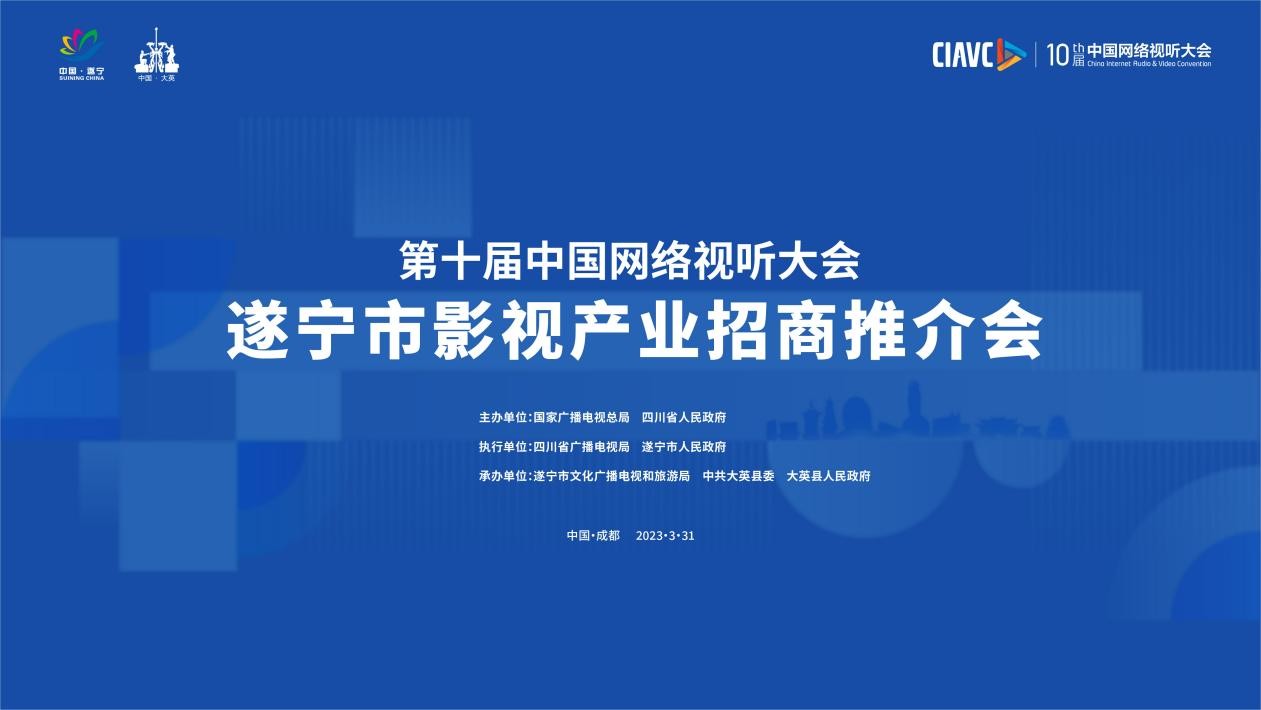 為深入學(xué)習(xí)貫徹黨的二十大、省委十二屆二次全會(huì)、市委八屆六次全會(huì)精神,推進(jìn)文化自信自強(qiáng),堅(jiān)持以人民為中心的創(chuàng)作導(dǎo)向,推出更多增強(qiáng)人民精神力量的優(yōu)秀作品,展示遂寧在創(chuàng)作拍攝、基地建設(shè)、品牌打造等方面取得的成績(jī),3月31日,由國(guó)家廣播電視總局、四川省人民政府主辦,四川省廣播電視局、遂寧市人民政府承辦,遂寧市文化廣播電視和旅游局、中共大英縣委、大英縣人民政府執(zhí)行的第十屆中國(guó)(成都)網(wǎng)絡(luò)視聽(tīng)大會(huì)子活動(dòng)——遂寧市影視產(chǎn)業(yè)招商推介會(huì)在成都世紀(jì)城新國(guó)際會(huì)議中心錦江廳舉行。