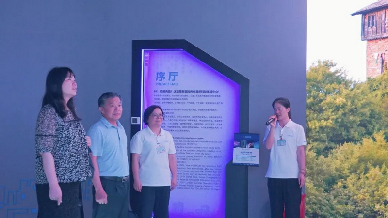 調(diào)研指導(dǎo)組一行參觀了新亞勝光電園區(qū)及產(chǎn)品體驗(yàn)展示中心。周玲副處長詳細(xì)聽取了新亞勝光電的企業(yè)基本情況、核心技術(shù)優(yōu)勢及落地的眾多精彩案例情況,對新亞勝光電近年來取得的優(yōu)異成績表示肯定。