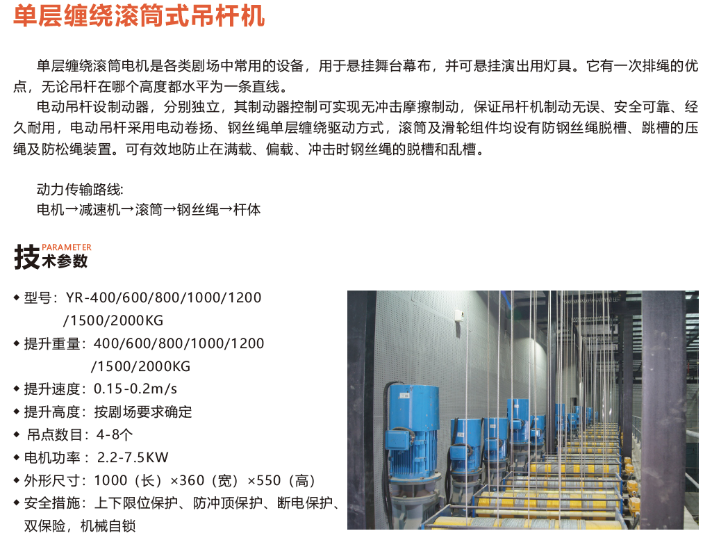 廣州市越榮舞臺設(shè)備有限公司前身是江西南昌永達(dá)電機貿(mào)易商行,創(chuàng)建于1989年,現(xiàn)公司總部設(shè)于廣州,下轄海南、湖南、北京、上海四個分公司,員工總數(shù)逾150人。公司注冊資本金伍佰壹捌萬元整。越榮經(jīng)歷近二十幾年的洗禮,憑著艱苦奮斗與穩(wěn)步發(fā)展,開創(chuàng)了“專業(yè)機械制作及銷售”的典范。一直以來,越榮在舞臺機械的創(chuàng)新上勤下苦功,力求以穩(wěn)定為基礎(chǔ),以技術(shù)為核心的思維方針,創(chuàng)建一流的舞臺機械品牌,立足國內(nèi)舞臺機械頂端品牌之一。越榮擁有自身創(chuàng)建的多個品牌:YUERONG越榮(舞臺機械類產(chǎn)品)、君越紡(紡織內(nèi)類產(chǎn)品)君博安(舞臺音響類產(chǎn)品)君森(舞臺燈光類產(chǎn)品)。我們主要經(jīng)營舞臺吊桿、拉幕機、電影銀幕架、升降伸縮旋轉(zhuǎn)舞臺、防火阻燃幕布、窗簾布、電動手動假臺口升降樂池等臺上臺下機械。集生產(chǎn)制造、項目設(shè)計、安裝調(diào)試、售后服務(wù)為一體。越榮為更好的服務(wù)于廣大工程商及業(yè)主,2011年公司通過了行業(yè)ISO認(rèn)證,高品質(zhì)的產(chǎn)品,溶入越榮精心的工程服務(wù),我們有信心為廣大客戶提供一流的舞臺設(shè)備類的解決方案及精制的工程服務(wù)。公司聯(lián)系方式:地址:廣州市天河區(qū)黃埔大道中124號1504房 Address: Guangzhou City, Tianhe District Whampoa Road No. 124 room 1504 TEL: 020-85639466 85523483 FAX: 020-85616734 www.gzyuerong.com