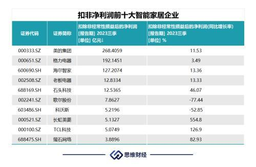 智能家居的上市公司有千億的市值和營收,但論扣非凈利潤指標(biāo),過百億者都是佼佼者。