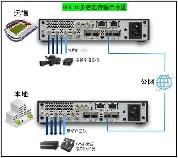 ● 強大的HFR高幀率傳輸能力:支持高清, X2, X3, X4多倍速網(wǎng)絡(luò)傳輸,甚至公網(wǎng)傳輸,而多路畫面之間能保持非常精準的同步,EVS收錄后回放精彩慢動作。
