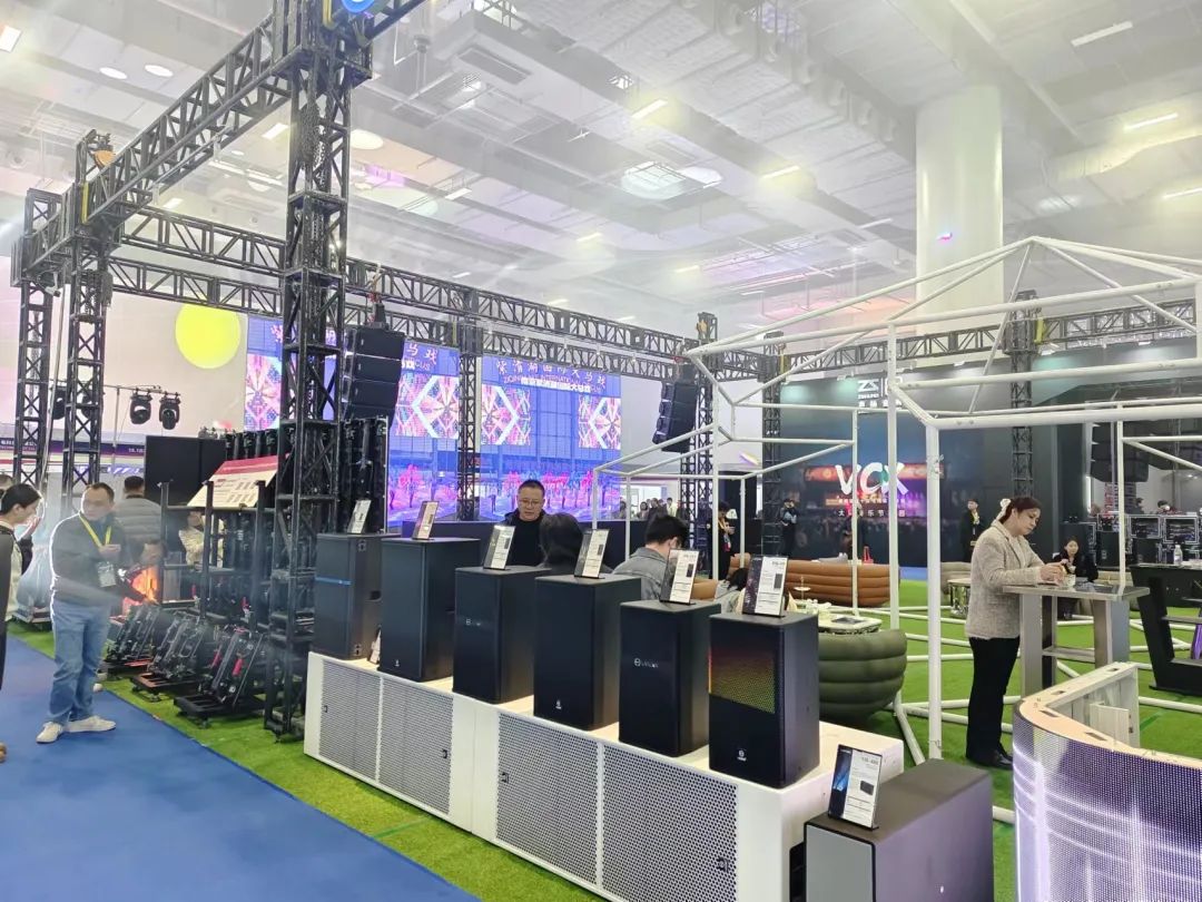 本屆2024GETshow展,廣州市赫茲音響有限公司展位以豐富的展示內(nèi)容吸引了眾多目光。展位以沉浸式超大型戶外電音派對應(yīng)用場景為布局,簡約而不失大氣,充分展示了赫茲音響的品牌形象。主要分為轟趴體驗區(qū)、線陣試音區(qū)、洽談區(qū)、超大屏幕案例展示區(qū)、觀展休息區(qū)、沙發(fā)區(qū)。展出的產(chǎn)品更是精品云集,人氣爆棚。國內(nèi)外觀眾絡(luò)繹不絕,讓每一位觀眾都能親身感受到專業(yè)產(chǎn)品的獨(dú)特魅力。