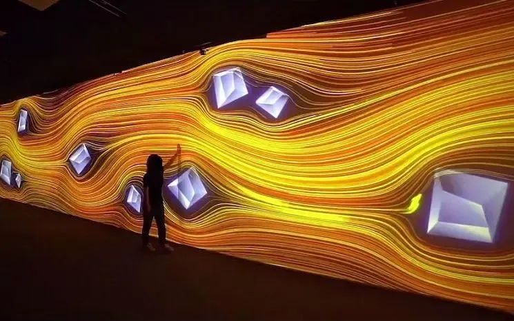在沉浸式投影展覽中,通常會(huì)借助投影機(jī)將藝術(shù)作品鋪滿整個(gè)室內(nèi)空間。
