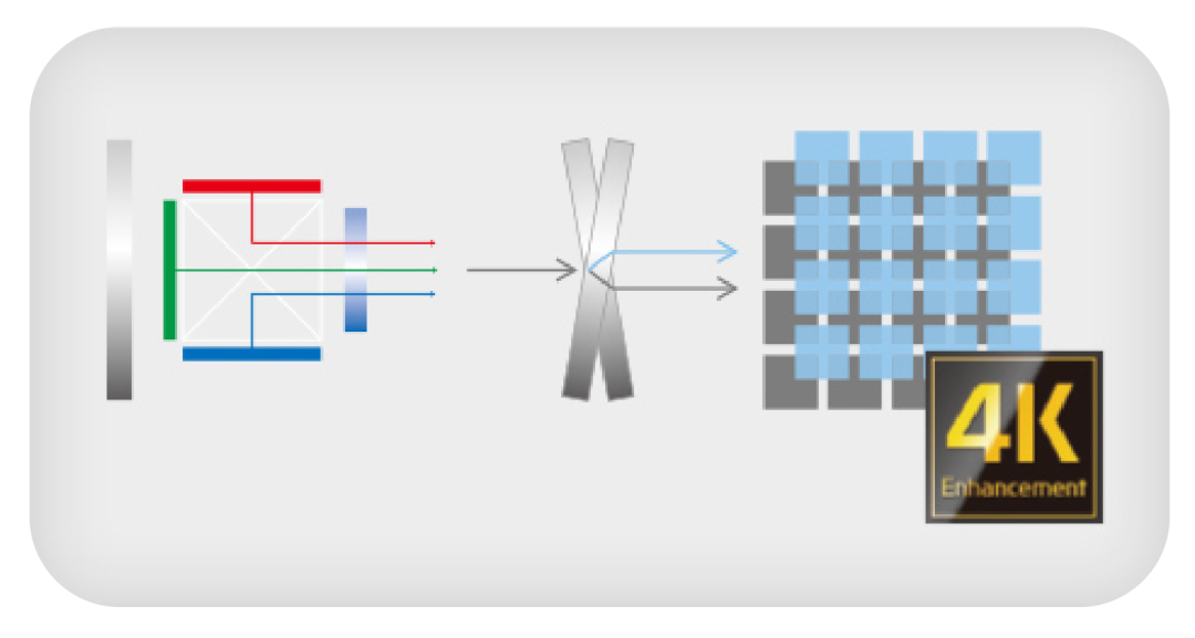*1 4K增強功能可將像素點沿對角線方向位移0.5個像素使分辨率翻倍,清晰度超越了全高清的圖像質量。物理分辨率仍為1920 x 1200。