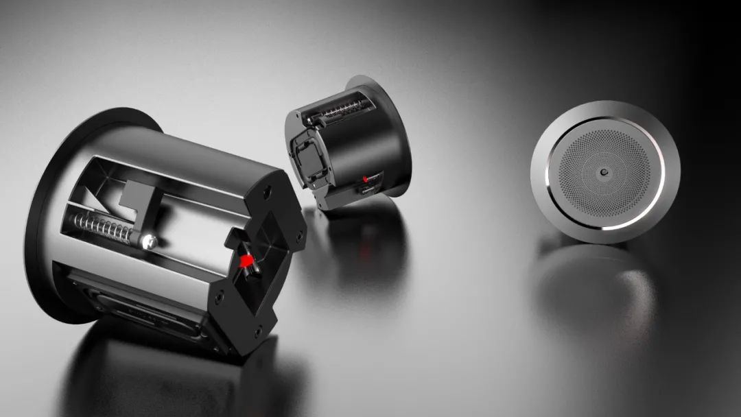 吸頂式揚聲器有著大膽的工業(yè)設計,揚聲器與中心軸呈18度傾斜角設計,能在支架內進行360度繞軸轉動,業(yè)主完全可以根據自身需求,和聲學設計師一起,精確調整揚聲器聲音輻射方向,保證房間擁有足夠的聲壓級,無須調整房間布局,只需將揚聲器旋轉至對的位置,便可盡情享受音樂給您帶來的快感。