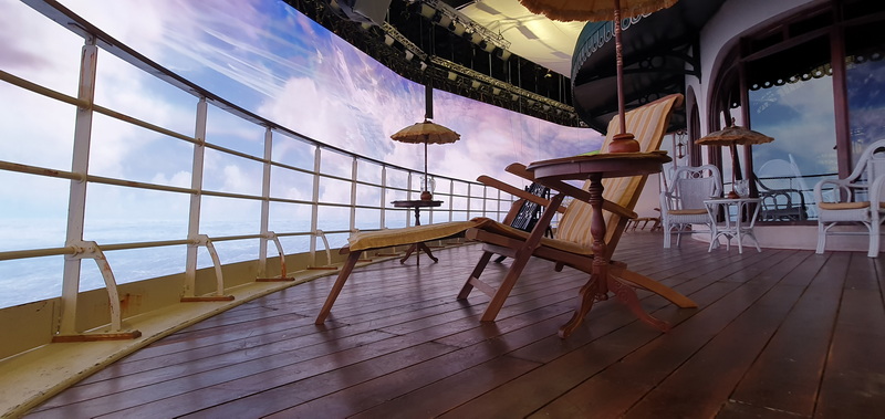 在正式拍攝過程中,制作團隊共為這一場景創(chuàng)建了11個不同版本的天空,以及時長50秒的不同版本海洋——波濤洶涌的海面、平靜的海面和用于一天中不同時間的海洋等。當這些畫面被投影至影棚中的11個巨大(70米×90米)環(huán)繞式LED屏時,那種天空如液體般流動的視覺表現(xiàn),帶給了現(xiàn)場人員巨大的視覺震撼。