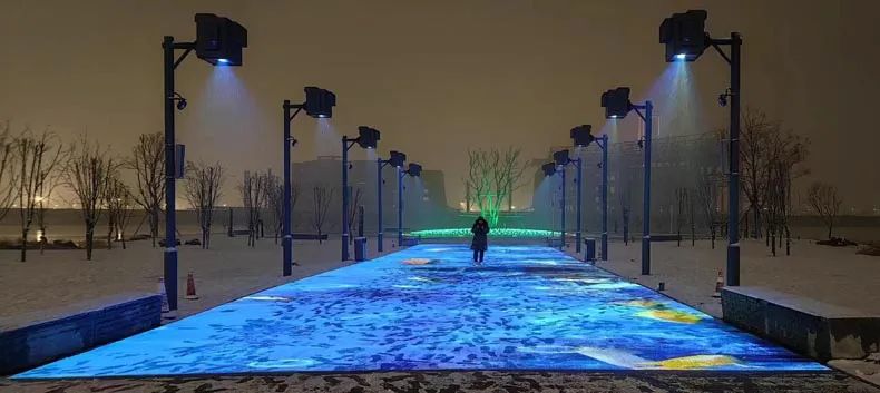 在智慧化建設的背景之下,通過將地面互動投影融入其中,打造出了具有互動元素的地面投影照明項目,使得公園已成為夜間充滿活力氛圍的熱門打卡地。