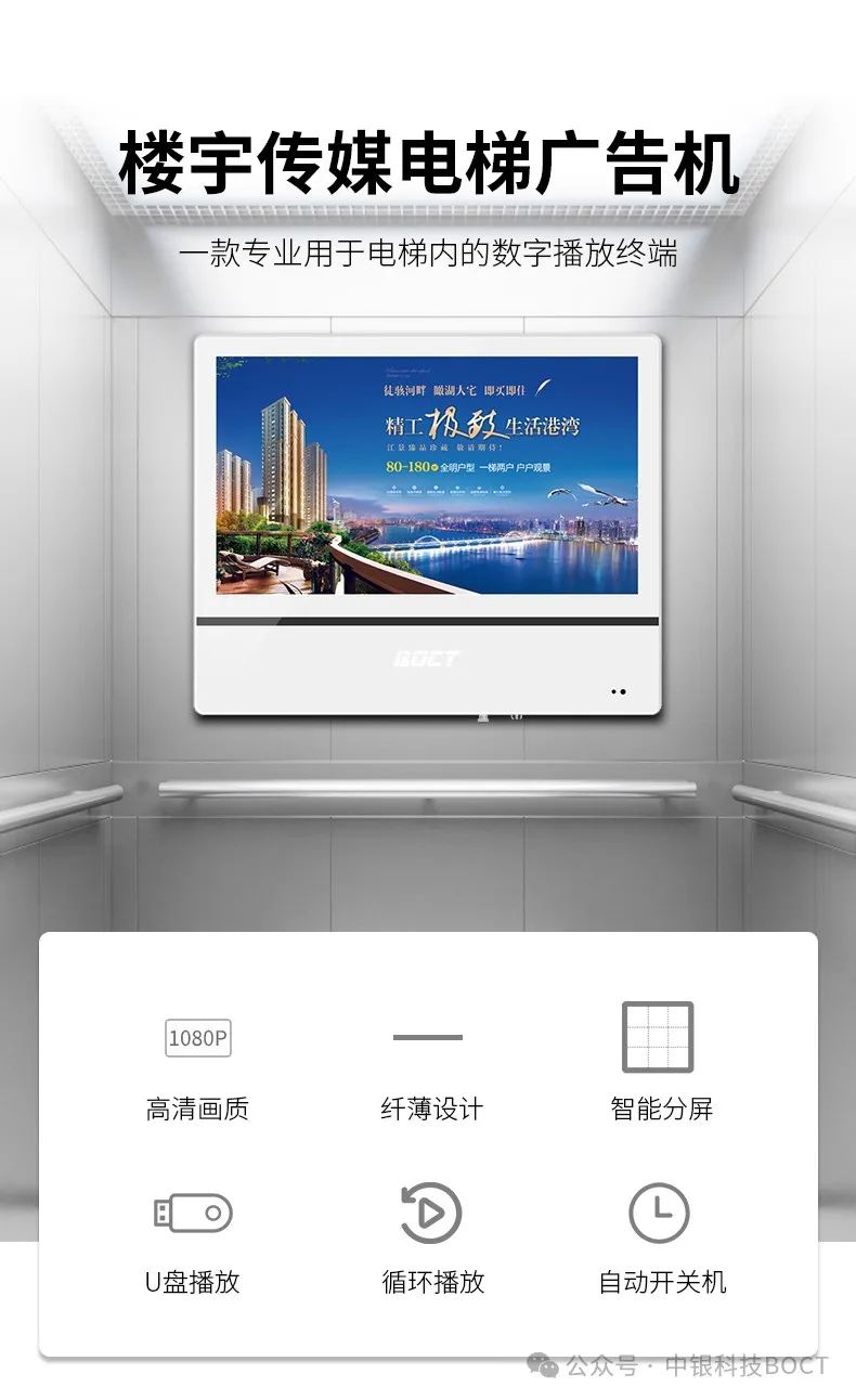 中銀樓宇廣告機(jī)對(duì)目標(biāo)受眾進(jìn)行精準(zhǔn)定位,實(shí)現(xiàn)廣告投放的高效精準(zhǔn)。畢竟電梯時(shí)我們每日出行必乘的載物,無論是家門口的電梯,還是公司的電梯。