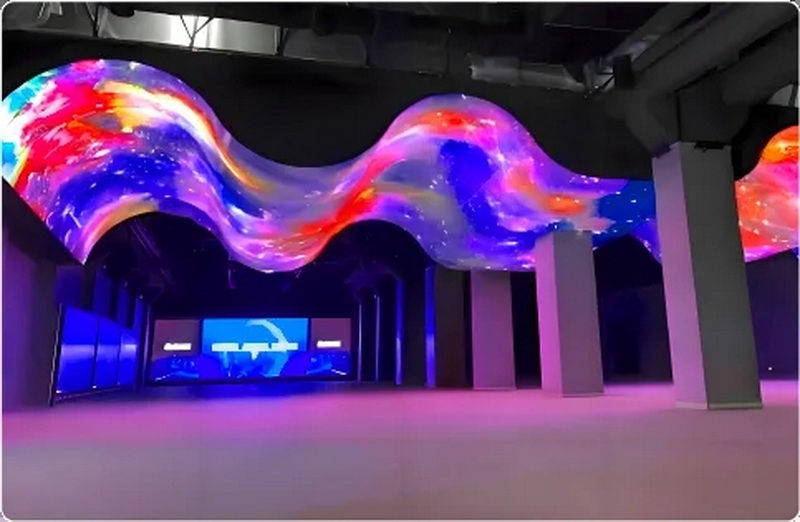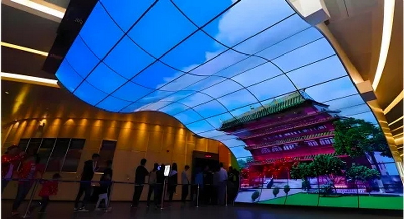 對于博物館、企業(yè)展廳、體驗館、生態(tài)展館等各類科技展館而言,更為創(chuàng)意的展示方式,也能讓每一幕、每一幀畫面展現(xiàn)更加鮮活真實,猶如躍屏而出,使虛擬與真實交融一體。借助柔性OLED顯示屏,可以靈活根據(jù)科技展館空間布局來進行創(chuàng)意搭建,實現(xiàn)立面、柱面、曲面等各類異形搭建,強化用戶對科技展館的個性化、科技化印象,打造創(chuàng)意亮點。