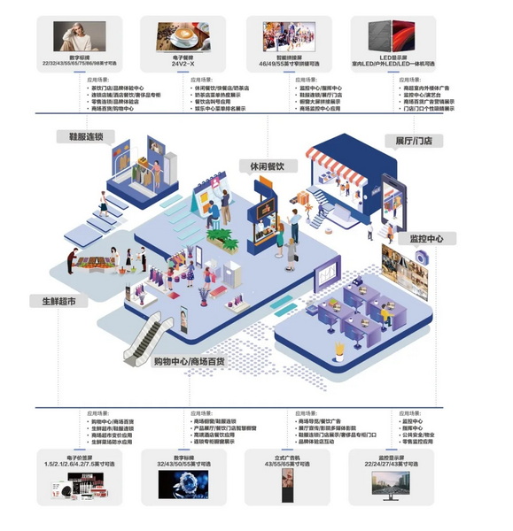同時(shí),針對(duì)企業(yè)用戶,AOC踐行涵蓋智能會(huì)議平板、數(shù)字標(biāo)牌、拼接屏、商用大屏、小間距LED等六大產(chǎn)品線的全屏戰(zhàn)略布局,為交通、教育、醫(yī)療、新零售、企業(yè)辦公等五大行業(yè)用戶,提供更多、更豐富的定制化商用顯示產(chǎn)品,進(jìn)一步為全國(guó)更多單位和企業(yè)量身定制更具針對(duì)性的行業(yè)視訊解決方案。如為瓜子二手車全國(guó)六十二家嚴(yán)選門(mén)店帶去近六百片的商用拼接屏產(chǎn)品;為古茗茶飲、開(kāi)心吧等全國(guó)便利連鎖店提供智慧零售展示解決方案;為北京大興國(guó)際機(jī)場(chǎng)、中國(guó)聯(lián)通北京通信電信博物館、上饒廣豐區(qū)電視臺(tái)融媒體中心等提供智慧信息展示解決方案!