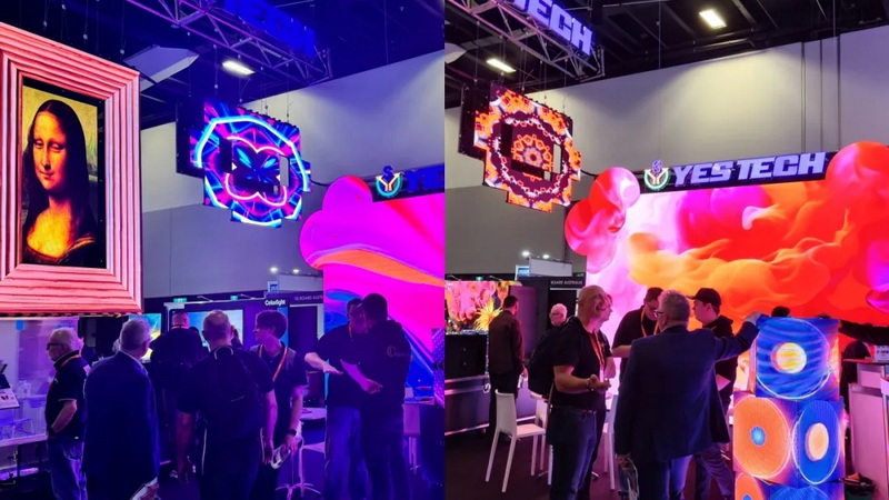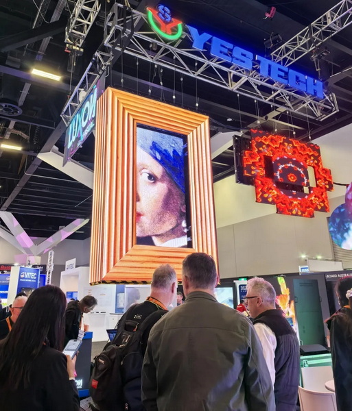 步入新亞勝的展位現(xiàn)場(chǎng),就像是進(jìn)入了一個(gè)藝術(shù)空間。貓臉背景屏、吊裝畫(huà)框屏、個(gè)性錯(cuò)位屏、疊層魔方屏……造型多樣的LED顯示大屏呈現(xiàn)出別具一格的視覺(jué)效果和多元的應(yīng)用潛力,引得眾多觀展人員駐足停留,上前咨詢產(chǎn)品信息。