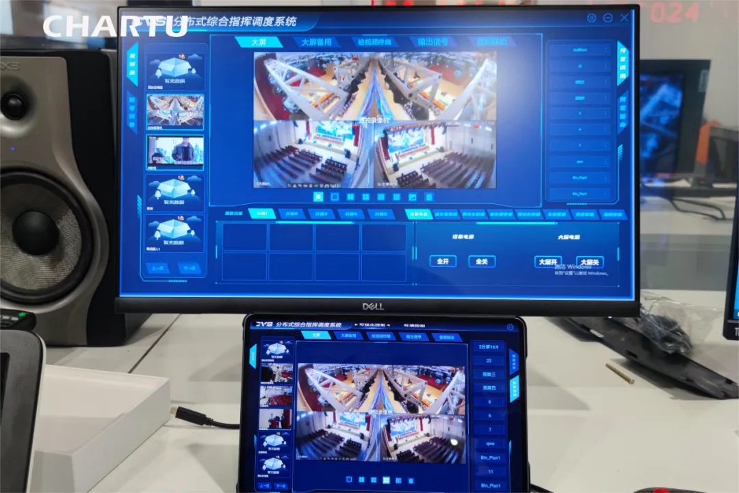 CHARTU長(zhǎng)圖以CVS分布式調(diào)度綜合管理系統(tǒng)為主要核心,配合可視化操作軟件、智能中控軟件,完成對(duì)當(dāng)?shù)貓?bào)告廳本地信號(hào)的傳輸管理,互聯(lián)共享等方面的建設(shè)。