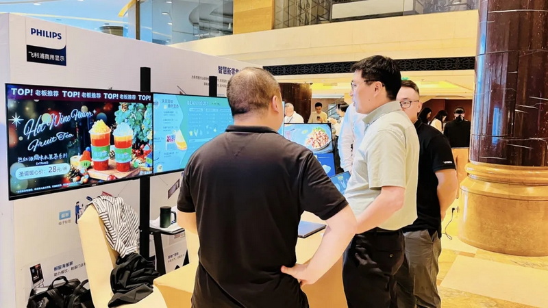 此次,飛利浦商顯攜24"吧臺屏、21:9吧臺屏、數(shù)字標牌、落地電子水牌等產(chǎn)品及數(shù)字化餐飲零售解決方案亮相論壇現(xiàn)場,展現(xiàn)新技術(shù)、新應(yīng)用、新方案,賦能餐飲零售行業(yè)數(shù)智升級,打造集品牌宣傳、餐飲品展示、點餐叫號等一站式餐飲門店解決方案,助力門店信息宣傳,聚焦消費者目光,提升門店人氣。