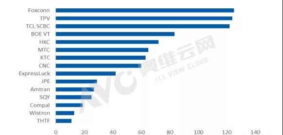 2017-2018年全球15大TV代工廠出貨量走勢(shì)