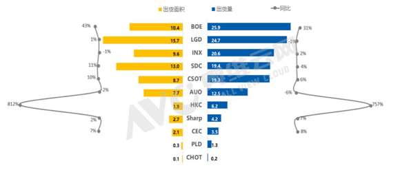 數(shù)據(jù)來(lái)源:奧維云網(wǎng)(AVC)顯示器件與系統(tǒng)事業(yè)部Unit:Mpcs,M㎡,%