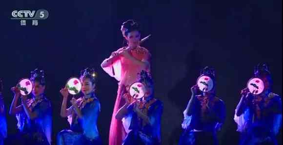 從北京奧運(yùn)會(huì)開幕式畫軸上飛來的舞蹈精靈——著名青年舞蹈家、杭州姑娘殷碩帶領(lǐng)著“西子姑娘”在一輪圓月的輝映之下,在《春江花月夜》的名曲中翩翩起舞。