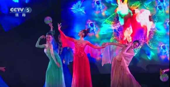 婉約的中國(guó)風(fēng)曲調(diào)轉(zhuǎn)而活力四射,舞蹈演員曼妙的身姿與影像完美配合,如夢(mèng)如幻。