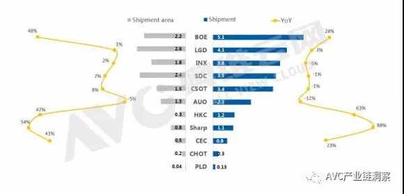 SDC:出貨量為3.5M,同比微降1%,環(huán)比增長16%,通過產(chǎn)品向大尺寸調整,出貨面積同比增長7%。