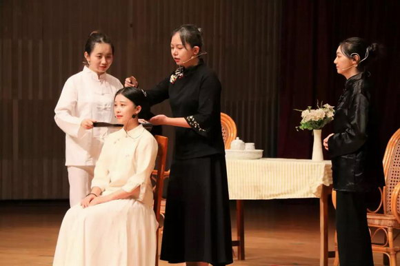 “梆——梆——梆——”“我們是隔壁隊(duì)對(duì)象隊(duì)”帶來(lái)的話劇《舌頭考》以幾聲清脆震耳的敲鑼聲拉開了演出大幕。大賽隊(duì)伍先后演出了《抓狗》《宇航員的眼睛》《帝女花Remix》等多個(gè)原創(chuàng)戲劇。舞臺(tái)上,每一個(gè)有血有肉的人物角色都展現(xiàn)出參賽者對(duì)話劇的熱情和創(chuàng)造力。