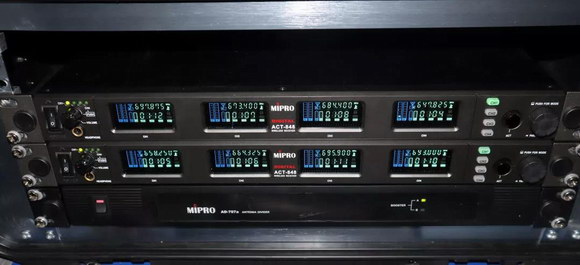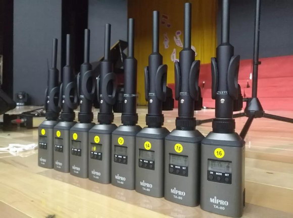 現(xiàn)場選用了8通道的MIPRO ACT-8系數(shù)字無線接收機(jī),搭配8只TA-80發(fā)射轉(zhuǎn)接器,插接各類有線話筒轉(zhuǎn)為無線話筒使用,進(jìn)行聲場測量以及人聲、樂器拾音,滿足現(xiàn)場不同場景的無線需求。