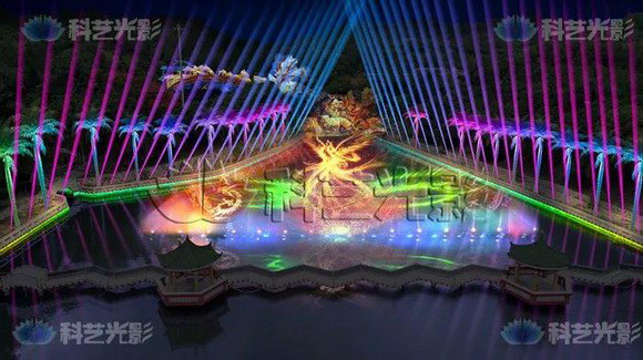 激光水舞秀簡而言之就是激光配合噴泉,水景打造的一場燈光秀。激光水舞秀在景區(qū)和城市公園,廣場都比較常見,但是由于各方面原因,我們常?吹降募す馑栊阈Ч谎噪y盡,更像是一堆燈具設備的群魔亂舞,科藝光影作為國內(nèi)優(yōu)秀的夜游燈光秀行家,今天主要分享:激光水舞秀如何打造?